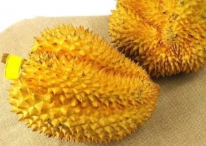 金枕頭榴蓮原產(chǎn)泰國,單果重量大,可達3-6公斤每顆,出肉率較高,果核較小,口感較粗糙,纖維感比較明顯。