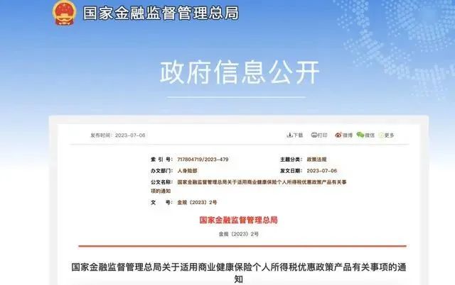 7月6日,國家金融監(jiān)督管理總局發(fā)布《關(guān)于適用商業(yè)健康保險個人所得稅優(yōu)惠政策產(chǎn)品有關(guān)事項的通知》;