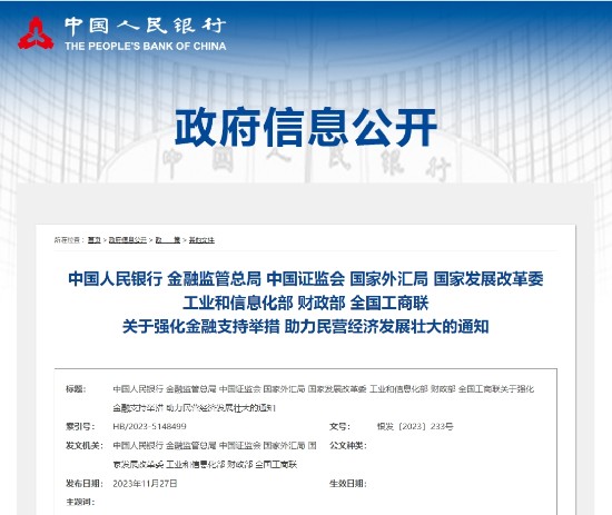 八部門聯(lián)合印發(fā)《關(guān)于強(qiáng)化金融支持舉措 助力民營經(jīng)濟(jì)發(fā)展壯大的通知》